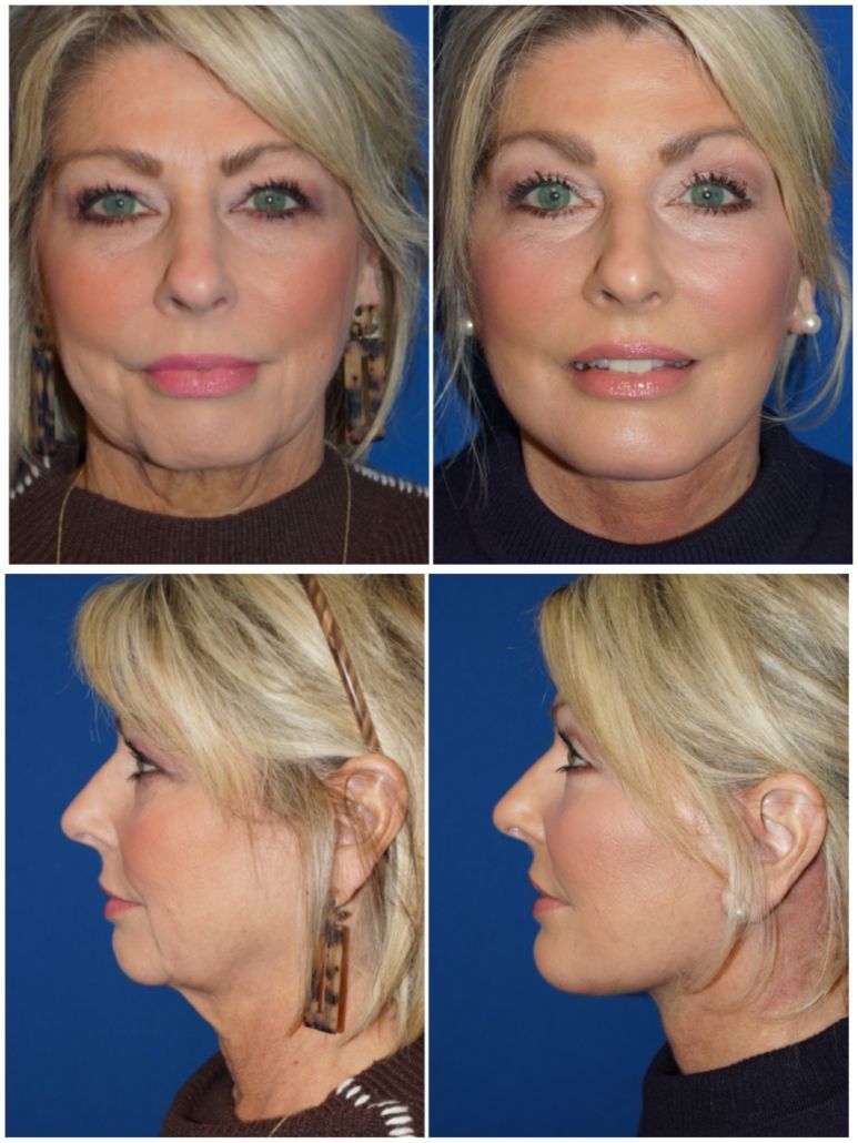A facelift, or facial rhytidectomy, is an operative procedure done to treat loose or sagging skin of the cheeks, jawline, and neck area. A facelift is designed to “set the clock back” by tightening excess skin and underlying muscle and tissue of the face and neck through hidden incisions in the hair and around the ears. This will result in a younger, refreshed, and enhanced facial appearance.